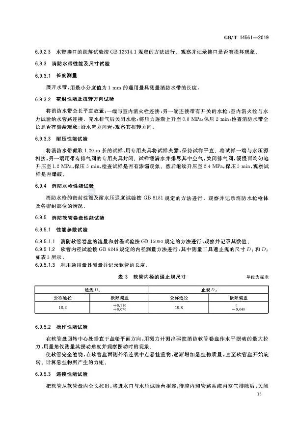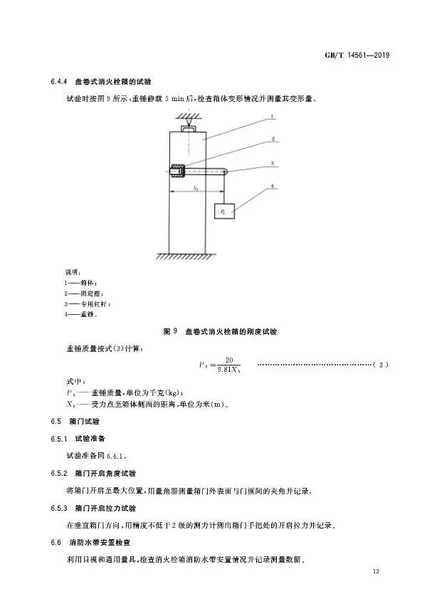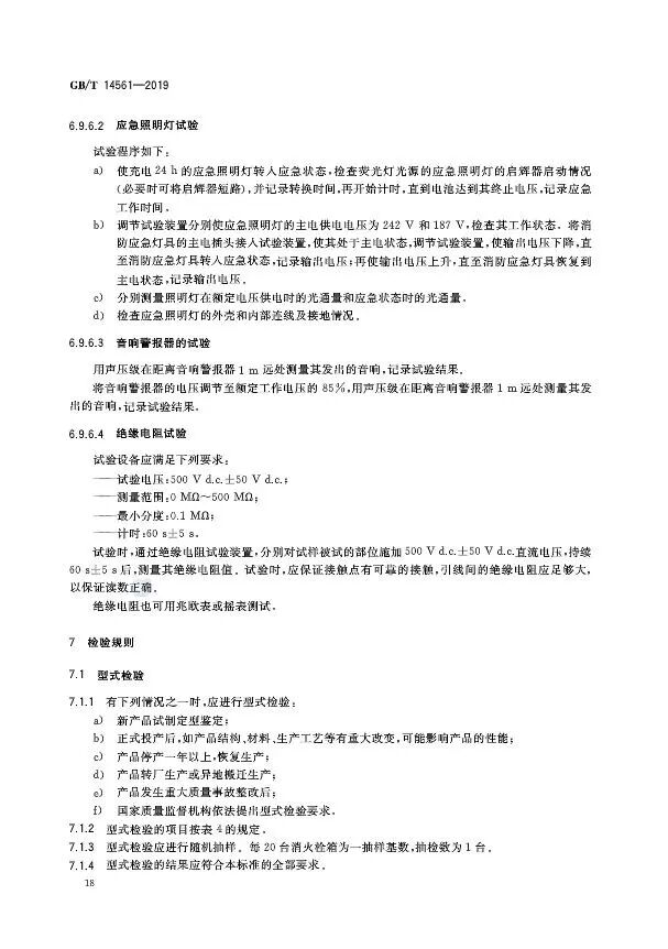 2. 修改了箱內(nèi)配置消防器材的性能要求(見(jiàn)第5章,2003年版的第5章)。 3. 修改了電器設(shè)備的要求(見(jiàn)5.9.6.1,2003年版的5.7)。 4. 增加了帶應(yīng)急照明設(shè)備消火栓箱的要求(見(jiàn)5.9.6.2,2019年版)。 5.9.6.2 應(yīng)急照明燈 消火栓箱內(nèi)配置的應(yīng)急照明燈應(yīng)滿足以下要求: a) 應(yīng)急照明燈的應(yīng)急轉(zhuǎn)換時(shí)間不應(yīng)大于3s,應(yīng)急工作時(shí)間不應(yīng)小于30min。 b) 應(yīng)急照明燈在主電電壓為187V~242V范圍內(nèi),不應(yīng)轉(zhuǎn)入應(yīng)急狀態(tài)。應(yīng)急照明燈由主電狀態(tài)轉(zhuǎn)入應(yīng)急狀態(tài)時(shí)的主電電壓應(yīng)為132V~187V范圍內(nèi)。由應(yīng)急狀態(tài)回復(fù)到主電狀態(tài)時(shí)的主電電壓不大于187V。 c) 應(yīng)急照明燈由主電源轉(zhuǎn)換到應(yīng)急電源供電時(shí),其光通量不應(yīng)低于電源在額定電壓時(shí)光通量的70%。 d) 使用熒光燈為光源的應(yīng)急照明燈不應(yīng)將啟輝器接入應(yīng)急回路。 e) 應(yīng)急照明燈應(yīng)設(shè)接地端子,且端子標(biāo)示清晰。 f) 消火栓箱內(nèi)設(shè)有微動(dòng)開(kāi)關(guān),箱門開(kāi)啟時(shí)應(yīng)急照明燈應(yīng)被點(diǎn)亮。 g) 應(yīng)急照明燈的安裝應(yīng)具有防水措施。 5. 修改了箱內(nèi)配置消防器材的試驗(yàn)方法(見(jiàn)第6章,2003年版的第6章)。 6. 增加了發(fā)光標(biāo)志的要求(見(jiàn)第8章,8.1,2019年版的第8章)。 8.1 消火栓箱箱門正面應(yīng)以直觀、醒目、勻整的字體標(biāo)注中文“消火栓”和英文“FIRE HYDRANT”字樣,文字應(yīng)采用發(fā)光材料。中文字體高度不應(yīng)小于100mm,寬度不應(yīng)小于80mm。