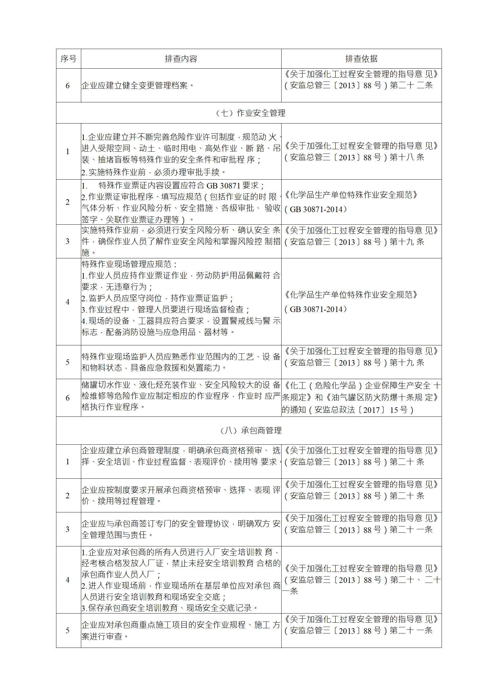 (1) 《化學(xué)品生產(chǎn)單位特殊作業(yè)安全規(guī)范》(GB 30871)規(guī)定的 動(dòng)火、進(jìn)入受限空間、盲板抽堵、高處作業(yè)、吊裝、臨時(shí)用電、動(dòng) 土、斷路等特殊作業(yè);