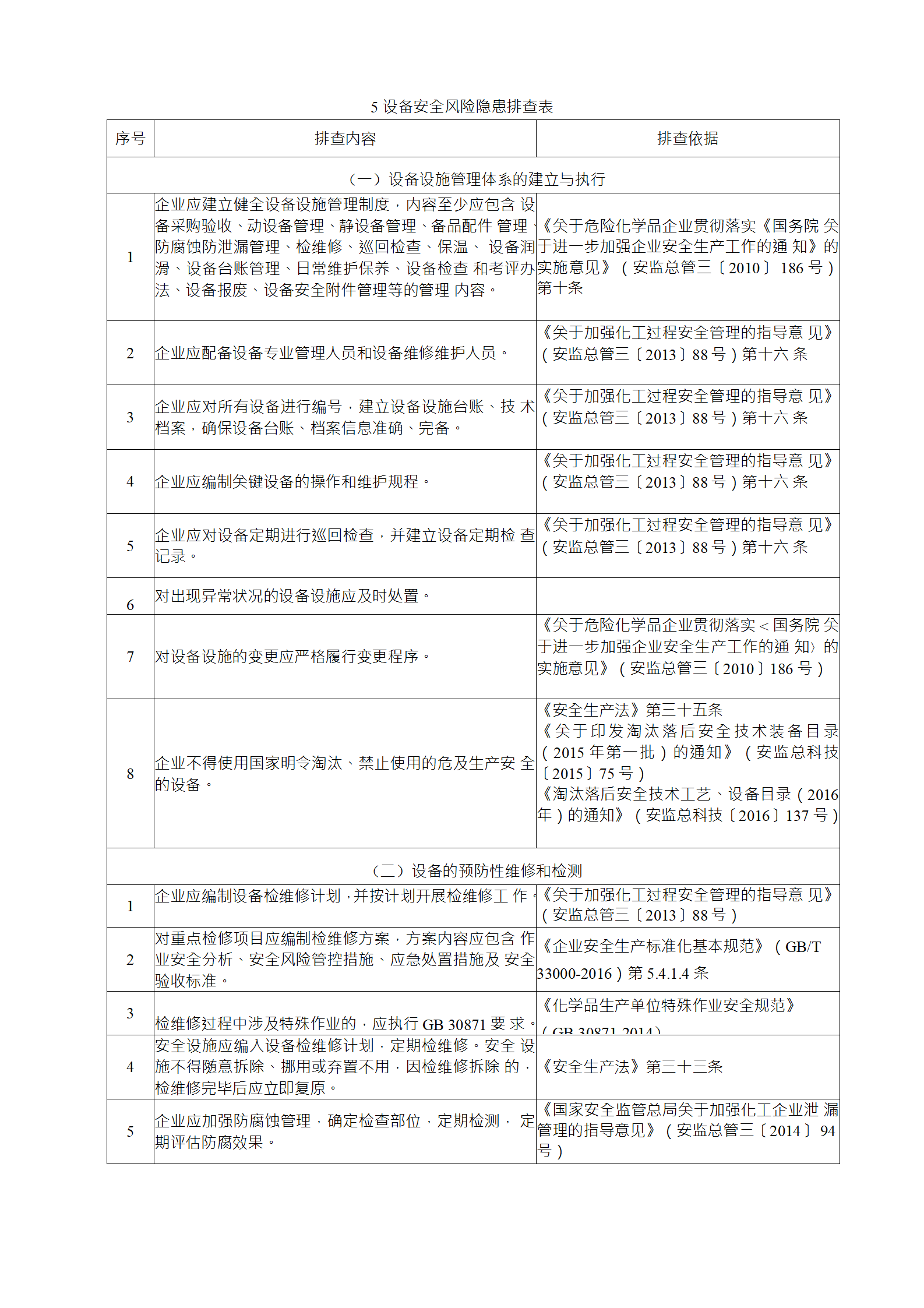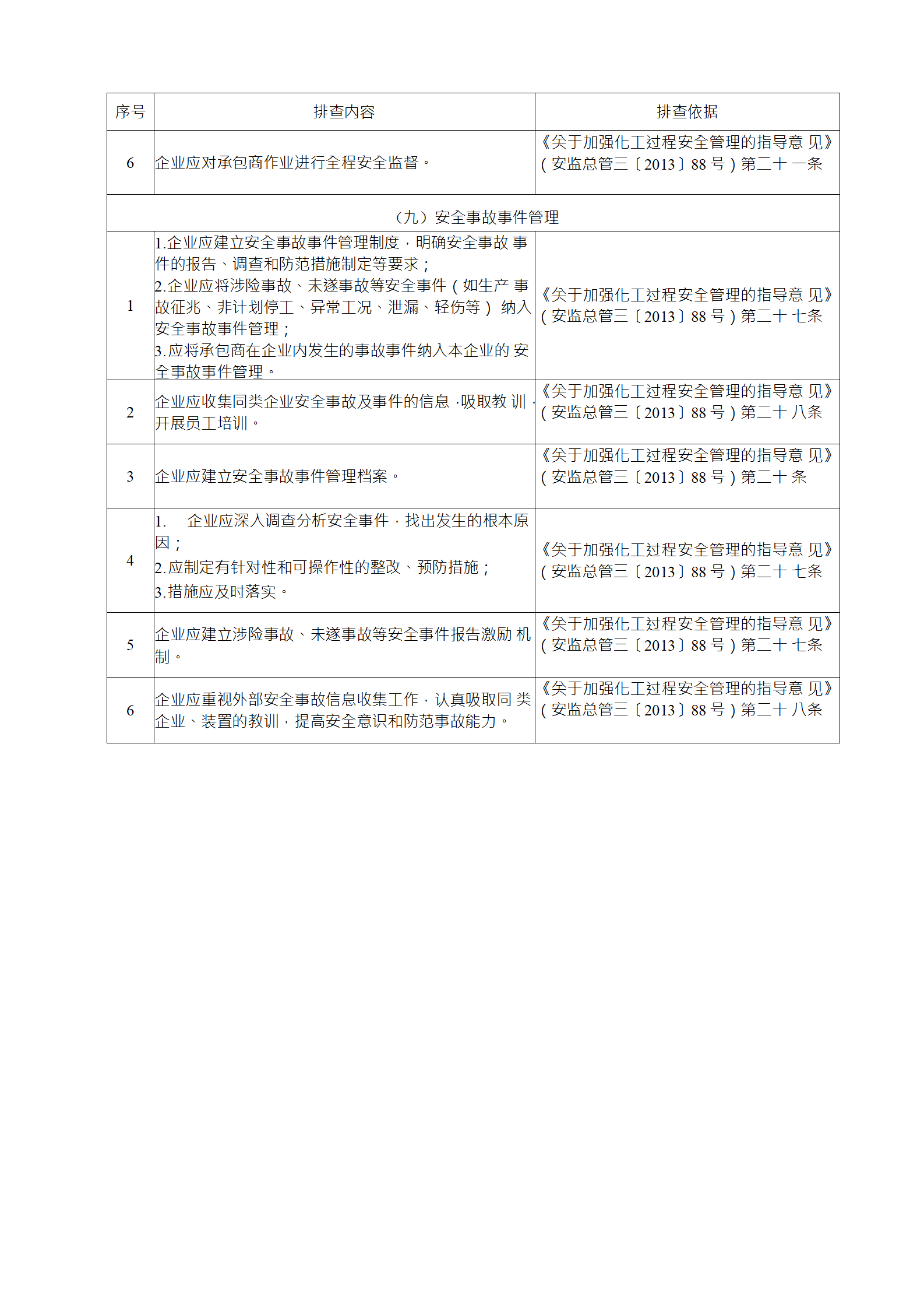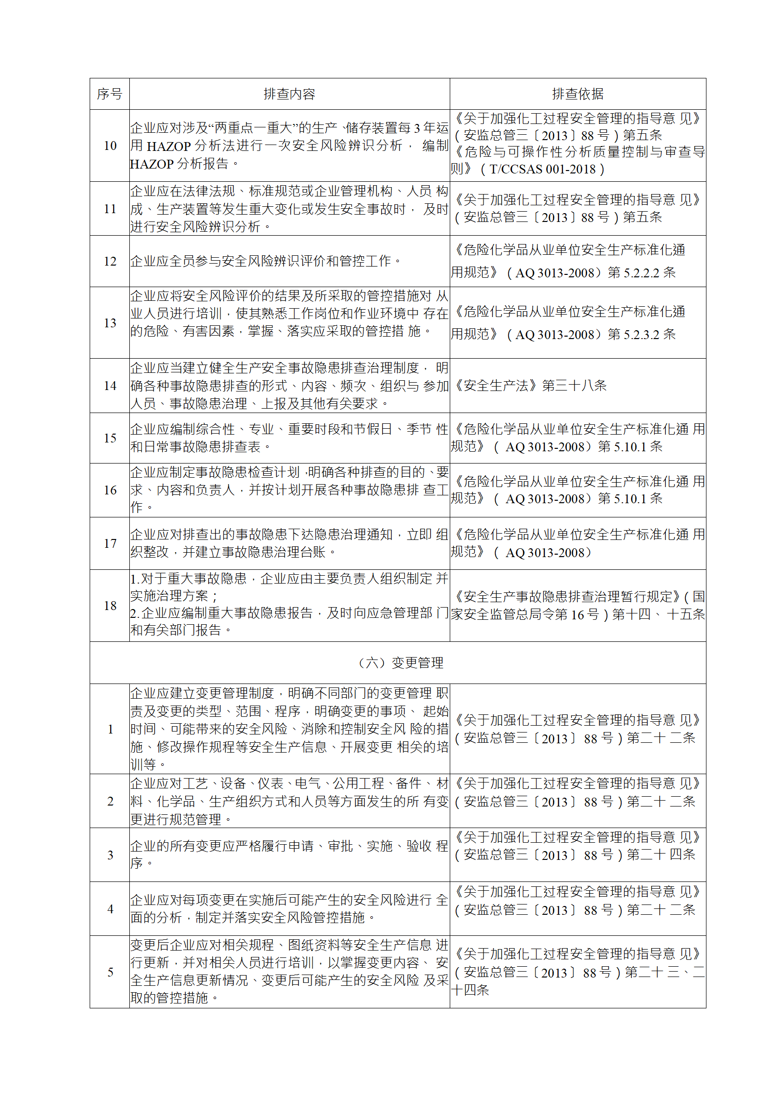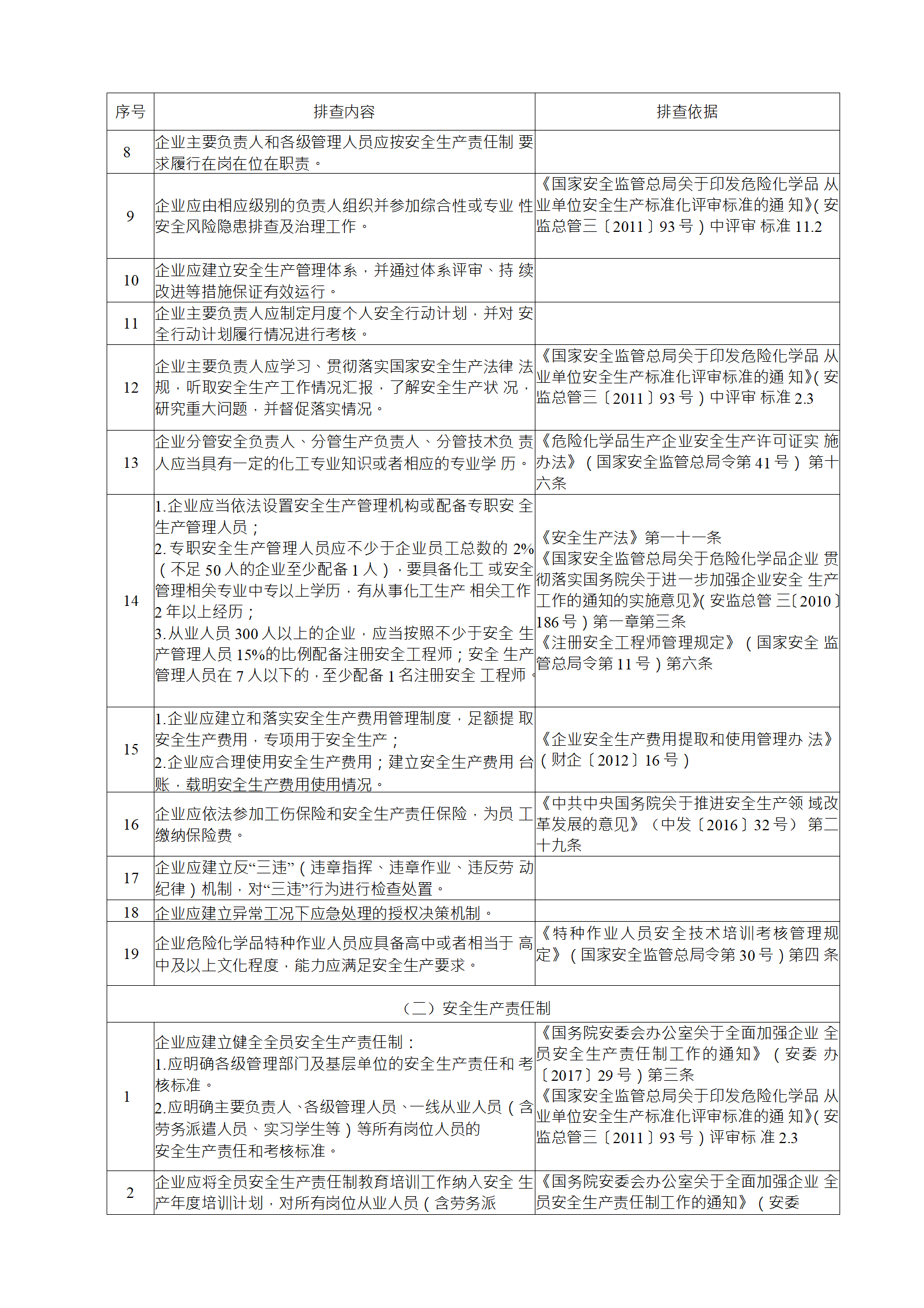 2)綜合性排查是指以安全生產(chǎn)責(zé)任制、各項(xiàng)專業(yè)管理制 度、安全生產(chǎn)管理制度和化工過程安全管理各要素落實(shí)情況為重點(diǎn)開展的全面檢查;