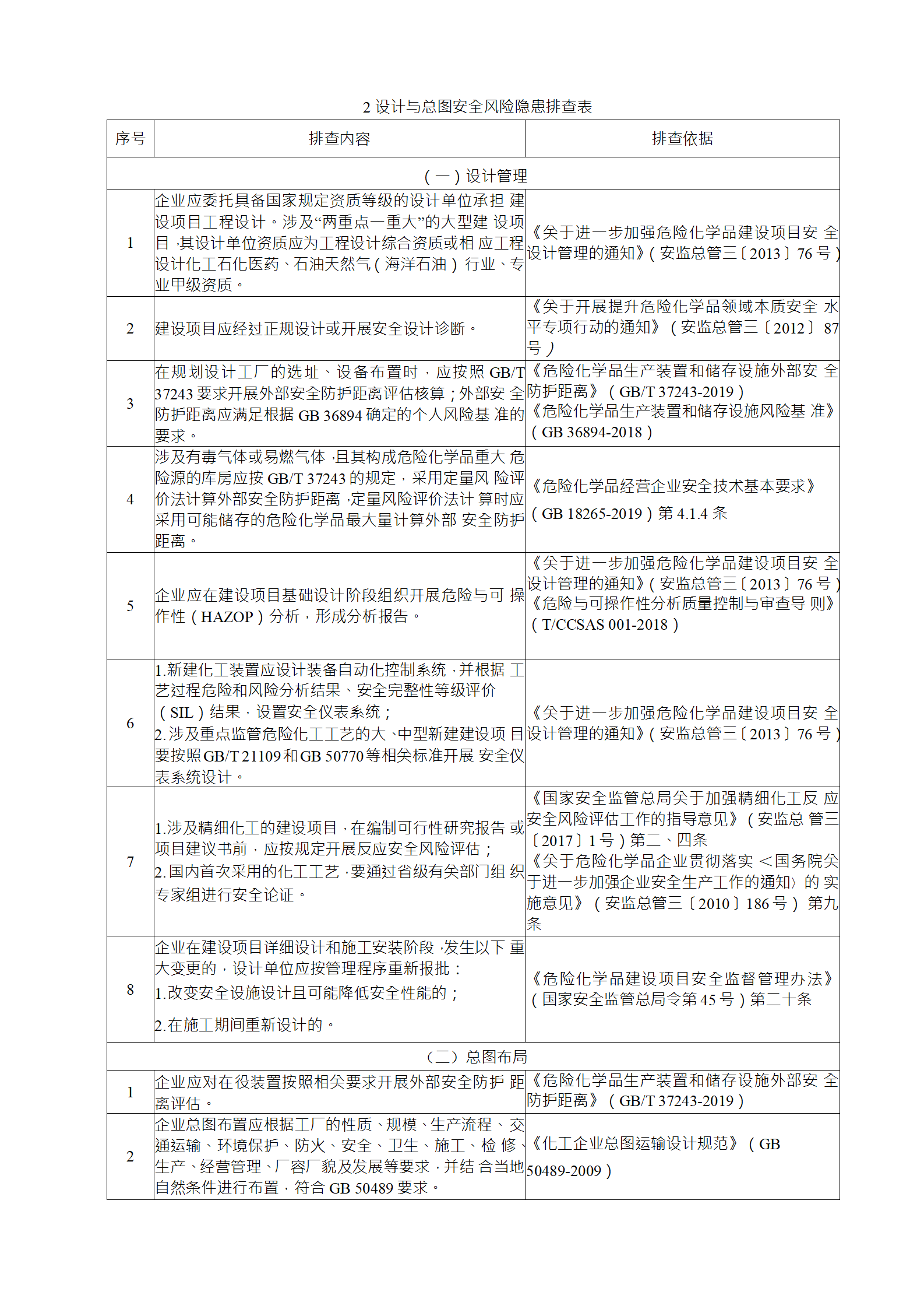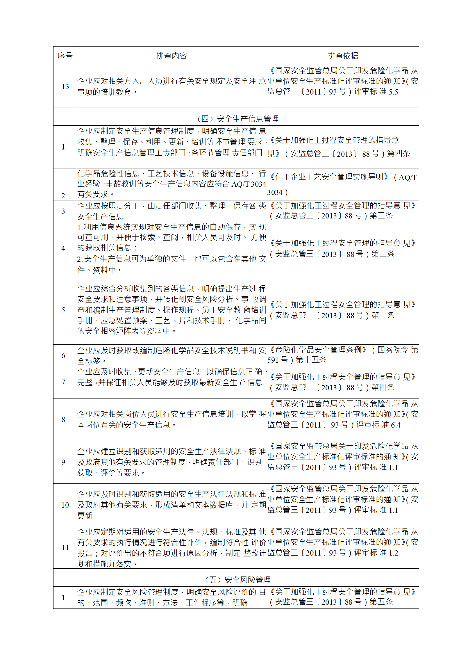 企業(yè)應(yīng)結(jié)合自身安全風(fēng)險(xiǎn)及管控水平,按照化工過程安全 管理的要求,參照各專業(yè)安全風(fēng)險(xiǎn)隱患排查表(見附件),編制 符合自身實(shí)際的安全風(fēng)險(xiǎn)隱患排查表,開展安全風(fēng)險(xiǎn)隱患排查 工作。