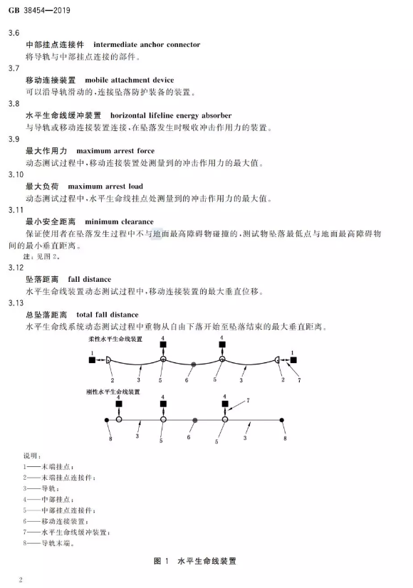 國家標準 | GB38454《墜落防護水平生命線裝置》 2020.7.1實施(全文)