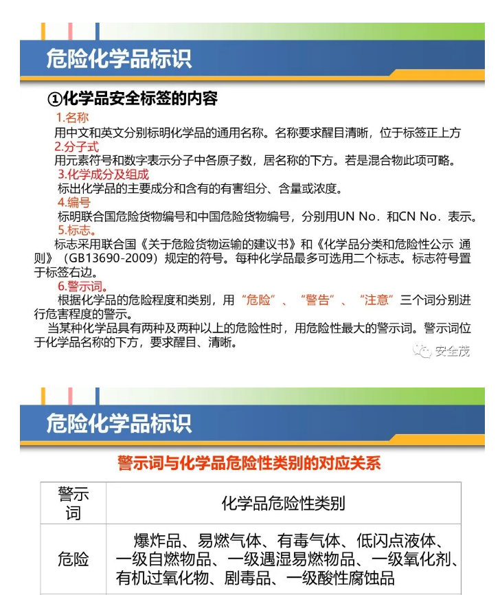 九十、危險(xiǎn)化學(xué)品生產(chǎn)和進(jìn)口企業(yè)要依據(jù)危險(xiǎn)化學(xué)品分類(lèi)信息表列出的各種危險(xiǎn)化學(xué)品分類(lèi)信息,按照《化學(xué)品分類(lèi)和標(biāo)簽規(guī)范》系列標(biāo)準(zhǔn)(GB 30000.2-2013~GB 30000.29-2013)及《化學(xué)品安全標(biāo)簽編寫(xiě)規(guī)定》(GB 15258-2009)等國(guó)家標(biāo)準(zhǔn)規(guī)范要求,科學(xué)準(zhǔn)確地確定本企業(yè)化學(xué)品的危險(xiǎn)性說(shuō)明、警示詞、象形圖和防范說(shuō)明,編制或更新化學(xué)品安全技術(shù)說(shuō)明書(shū)、安全標(biāo)簽等危險(xiǎn)化學(xué)品登記信息,做好化學(xué)品危害告知和信息傳遞工作。