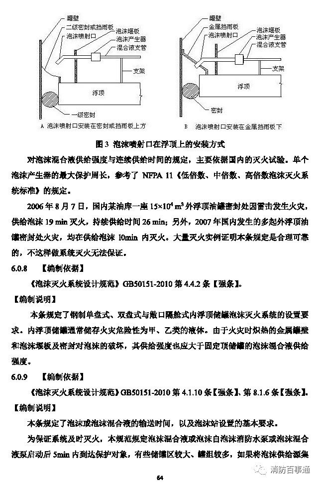 2 對于水溶性甲、乙、丙類液體和其它對普通泡沫有破壞作用的甲、乙、丙類液體固定頂儲罐,應為液上噴射系統(tǒng)或半液下噴射系統(tǒng);