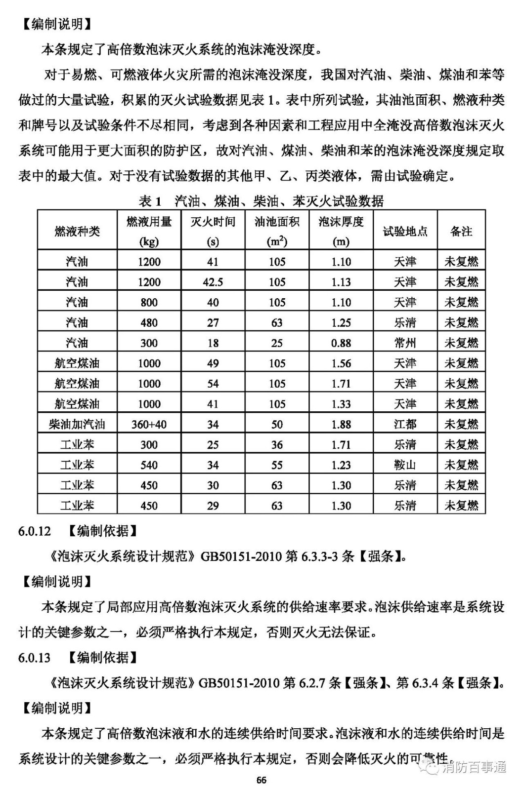 4 用于撲救非水溶性可燃液體火災的泡沫-水噴淋系統(tǒng)、泡沫槍系統(tǒng)、泡沫炮系統(tǒng),其水成膜泡沫液在緩釋放時的抗燒時間不應小于10min.;