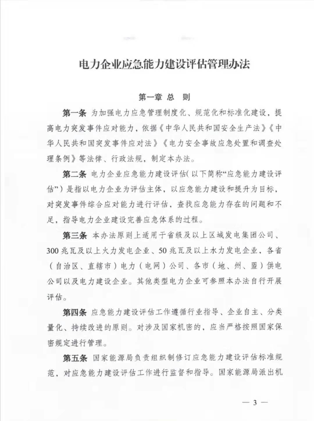國(guó)家能源局印發(fā)《電力企業(yè)應(yīng)急能力建設(shè)評(píng)估管理辦法》