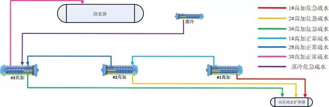 ③ 加熱器配有正常及事故疏水自動(dòng)調(diào)節(jié)裝置,加熱器正常疏水采用逐級(jí)自流方式,事故疏水直接疏至凝器疏水?dāng)U容器。