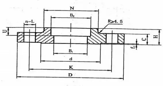 帶頸平焊法蘭頸部高度較低,對法蘭的剛度、承載能力有所提高。與對焊法蘭相比,焊接工作量大,焊條耗量高,經(jīng)不起高溫高壓及反復(fù)彎曲和溫度波動。