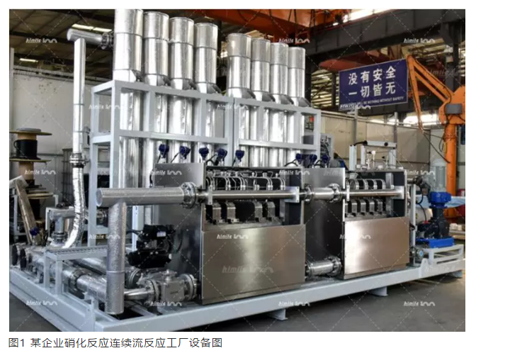 向有機分子的碳原子上引入硝基的反應稱作硝化反應。硝化反應在化學工業(yè)中應用廣泛、發(fā)展迅速,尤其是炸藥及含能材料領域的大規(guī)模生產(chǎn)中,科學家們對硝化反應的研究不斷深入,硝化理論體系不斷趨于完善[1,2]。在芳環(huán)和雜環(huán)上引入硝基的目的主要有三個方面:1) 將引入的硝基轉(zhuǎn)化為其他的取代基,例如硝基還原,是制備芳伯胺的一條重要的合成路徑。2) 利用硝基的強吸電性使芳環(huán)上的其他取代基(特別是氯基)活化,易于發(fā)生親核置換反應。3) 利用硝基的特性,賦予精細化工產(chǎn)品的某種特性,例如染料的顏色加深,作為藥物、炸藥或溫和的氧化劑等。硝化工藝主要分為間歇硝化和連續(xù)硝化工藝。間歇硝化工藝,采用滴加混酸或原料的方式至反應釜中,保證硝化反應在合適溫度進行,避免滴加速度過快導致?lián)Q熱不及時反應釜飛溫。由于反應的不同,很多反應結束后會有未反應完的原料進入分離器中,在高溫狀態(tài)下繼續(xù)反應,導致反應器升溫,給整個生產(chǎn)過程帶來危險。連續(xù)硝化工藝,可以通過遠程自動控制,連續(xù)加料、反應、分離,反應過程貫穿了整個生產(chǎn)工藝,避免重復投料、出料過程,反應物料配比準確、工藝指標穩(wěn)定,生產(chǎn)效率大幅提高,且工人勞動強度大幅降低。國家早在“十二五”期間就已經(jīng)開始在行業(yè)內(nèi)推廣連續(xù)硝化工藝,但直到現(xiàn)在,連續(xù)硝化工藝在行業(yè)內(nèi)的應用比例仍不高。有專家指出:企業(yè)堅持采用間歇式硝化工藝的很大原因是可以根據(jù)市場行情隨意更改工藝路線,生產(chǎn)銷量更大的其他產(chǎn)品。同時,很多化工企業(yè)對硝化工藝的危險性認識不足,存有僥幸心理,缺乏進行工藝升級改造的動力。硝化反應在小試或者中試時,反應器較小、物料均勻、反應溫度好控制。一旦工業(yè)化,反應釜體積增大,放大效應明顯,風險會大大增加。但目前外界對硝化工藝誤解很深,一提到硝化,就認為是非常危險的過程。硝化工藝的確是一個典型的放熱反應,具有一定的危險性,但是也絕對不應該被一刀切,需要根據(jù)具體的工藝情況進行區(qū)分。對具體工藝進行風險評估是非常有必要的。地方政府特別是化工大省山東、浙江、江蘇,都相繼出臺了不少細致嚴格的政策。如2018年初山東省安監(jiān)局下發(fā)《關于開展爆炸性化學品生產(chǎn)裝置安全評估的通知》,決定在全省范圍內(nèi)開展爆炸性化學品生產(chǎn)裝置安全評估,評估范圍包括:全省涉及硝基化合物、環(huán)氧化合物、過氧化物、偶氮化合物等自身具有爆炸性的化學品生產(chǎn)裝置。在項目建設篩選過程中,企業(yè)應該選擇本質(zhì)安全的工藝,禁止不安全工藝動工。如果對行業(yè)進行一刀切式的禁止生產(chǎn),勢必導致社會上產(chǎn)品嚴重缺乏,價格走高,可能一些不具備安全生產(chǎn)規(guī)范的廠家為了利益違法違規(guī)進行生產(chǎn),最終導致更大的危害。以微通道反應器為代表的微化工技術是一項新型的環(huán)保的化工技術,與傳統(tǒng)化學工業(yè)技術相比,能夠?qū)崿F(xiàn)更環(huán)保而且占地面積非常小,同時又能合理利用資源不會造成能耗高,已引起能源化工、環(huán)境工程等自然科學界其他領域的高度重視[3,4]。微通道反應器是利用精密加工技術制造的特征尺寸在幾十微米到幾毫米之間的連續(xù)反應器,其內(nèi)部特殊的通道結構可以大幅強化傳質(zhì)效果,為硝化反應的精確、穩(wěn)定、安全進行提供了可行的解決方案。連續(xù)流微通道反應器可以實現(xiàn)根據(jù)不同工藝進行定制化,精確控制反應器內(nèi)溫度、系統(tǒng)壓力、原料及硝化劑流量、冷媒流量、pH值等參數(shù),做到反應系統(tǒng)溫度壓力的報警和聯(lián)鎖、自動進料控制和聯(lián)鎖等,還設有泄爆管和緊急排放系統(tǒng)。下圖為山東豪邁公司為浙江某企業(yè)定制的連續(xù)流硝化反應工廠,目前已穩(wěn)定生產(chǎn)。