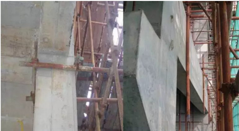 腳手架預(yù)埋連墻件錯誤做法:預(yù)埋件安裝在結(jié)構(gòu)梁面上,給外墻施工留下滲漏隱患。