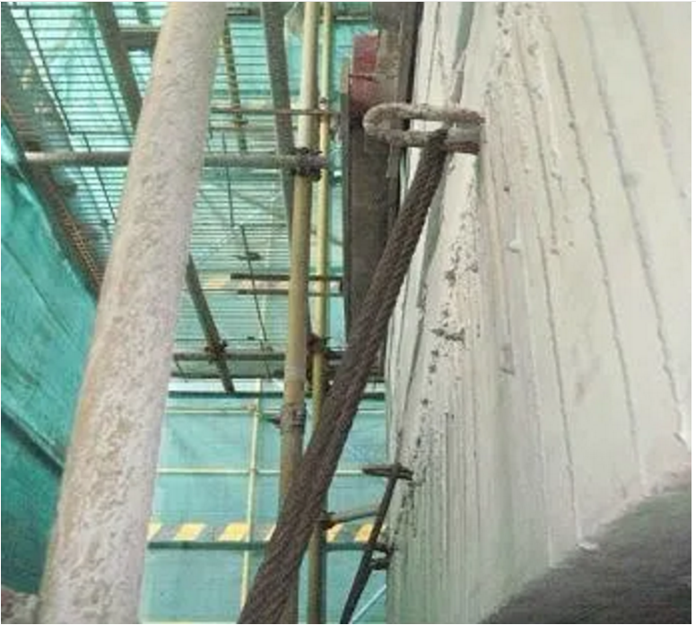 鋼絲繩卸載預(yù)埋件錯誤做法:預(yù)埋件安裝在結(jié)構(gòu)梁面上,給外墻施工留下滲漏隱患。