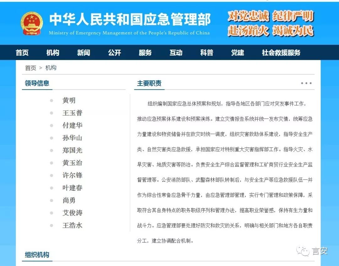 應(yīng)急管理部組織機(jī)構(gòu)公布