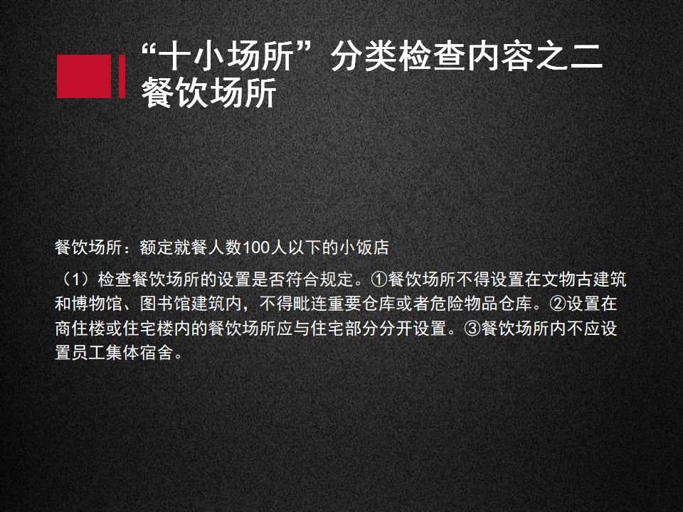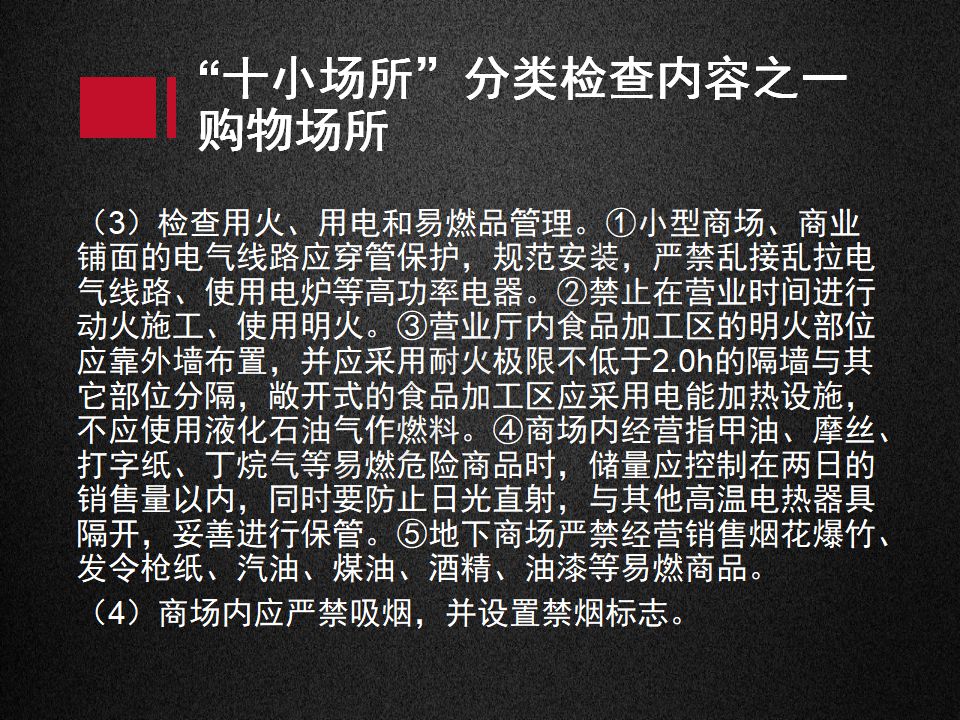 “十小場所”一般是指小商場、小飯店、小旅館、小休閑健身場所、小醫(yī)院(診所、療養(yǎng)院、養(yǎng)老院、福利院)、小型學(xué)校(托兒所、幼兒園)、小生產(chǎn)加工企業(yè)、易燃易爆危險品銷售場點、物資儲存點(糧庫、棉庫、木材堆場)、金融(證券)場所?!笆鏊币蛉藛T密集、防火設(shè)施欠缺,火災(zāi)危險性大,歷來是火災(zāi)高發(fā)的重點場所,易造成群死群傷的惡性事故。