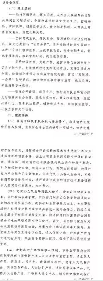 《意見》明確,消防執(zhí)法改革要堅持問題導(dǎo)向、源頭治理,從社會反映強烈的消防執(zhí)法突出問題抓起,全面改革消防監(jiān)督管理工作,從源頭上堵塞制度漏洞、防范化解風(fēng)險;堅持簡政放權(quán)、便民利企,最大力度推行“證照分離”,堅決破除消防監(jiān)督管理中各種不合理門檻和限制,提升服務(wù)質(zhì)量;堅持放管并重、寬進嚴(yán)管,把該放的權(quán)力充分放給市場,做好簡化審批和強化監(jiān)管有效銜接,加強和規(guī)范事中事后監(jiān)管,守住消防安全底線;堅持公開透明、規(guī)范有序,健全執(zhí)法制度、規(guī)范執(zhí)法行為、完善執(zhí)法程序、創(chuàng)新執(zhí)法方式、加強執(zhí)法監(jiān)督,讓權(quán)力在陽光下運行。同時,提出了消防執(zhí)法改革5個方面12項主要任務(wù)。
