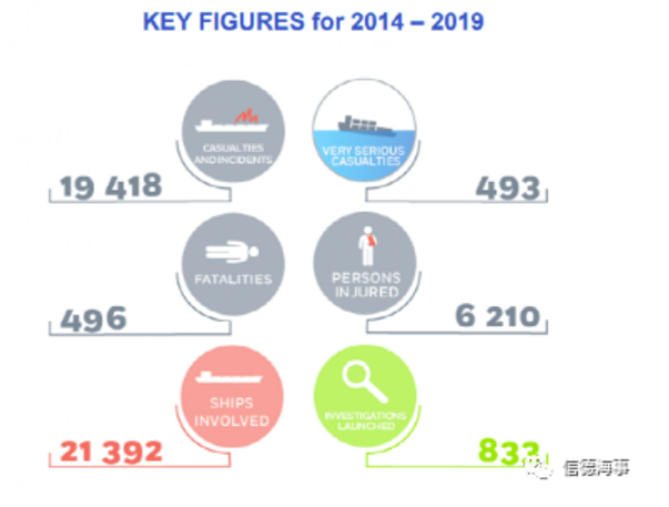 調(diào)查報告的來源為歐盟成員國在歐洲電子數(shù)據(jù)庫(EMCIP)中所報告的事故。2014-2019年,EMCIP數(shù)據(jù)庫中存儲的事件總數(shù)增加到19500個。這意味著在此期間每年平均有3236名海上人員發(fā)生傷亡事故。
