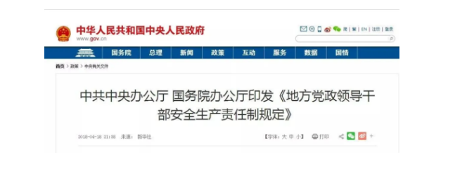 2018年4月,國(guó)務(wù)院辦公廳印發(fā)《地方黨政領(lǐng)導(dǎo)干部安全生產(chǎn)責(zé)任制規(guī)定》第二十四條規(guī)定,地方黨政領(lǐng)導(dǎo)干部對(duì)發(fā)生生產(chǎn)安全事故負(fù)有領(lǐng)導(dǎo)責(zé)任且失職失責(zé)性質(zhì)惡劣、后果嚴(yán)重的,不論是否已調(diào)離轉(zhuǎn)崗、提拔或者退休,都應(yīng)當(dāng)嚴(yán)格追究其責(zé)任。