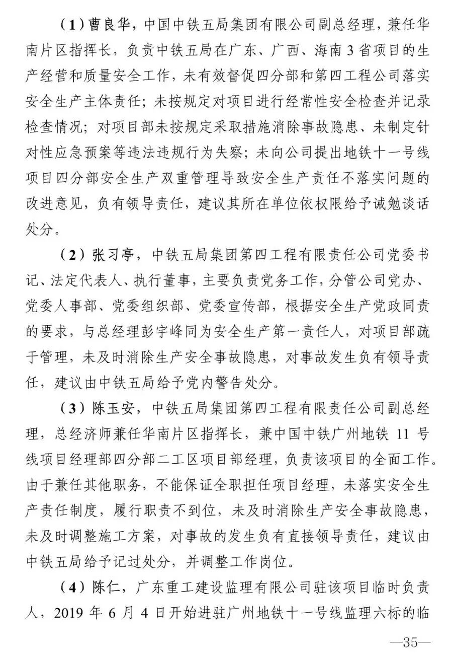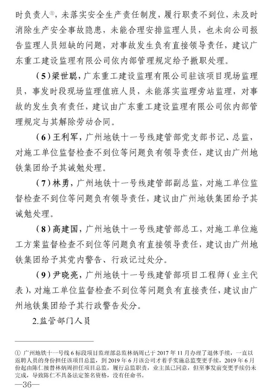 上述2人對事故的發(fā)生負(fù)有直接責(zé)任。因涉嫌刑事犯罪,建議由公安機(jī)關(guān)依法追究其刑事責(zé)任。建議待司法機(jī)關(guān)依法作出處理后,由涉事企業(yè)和行業(yè)主管部門按照管理權(quán)限及時給予相應(yīng)的處理。