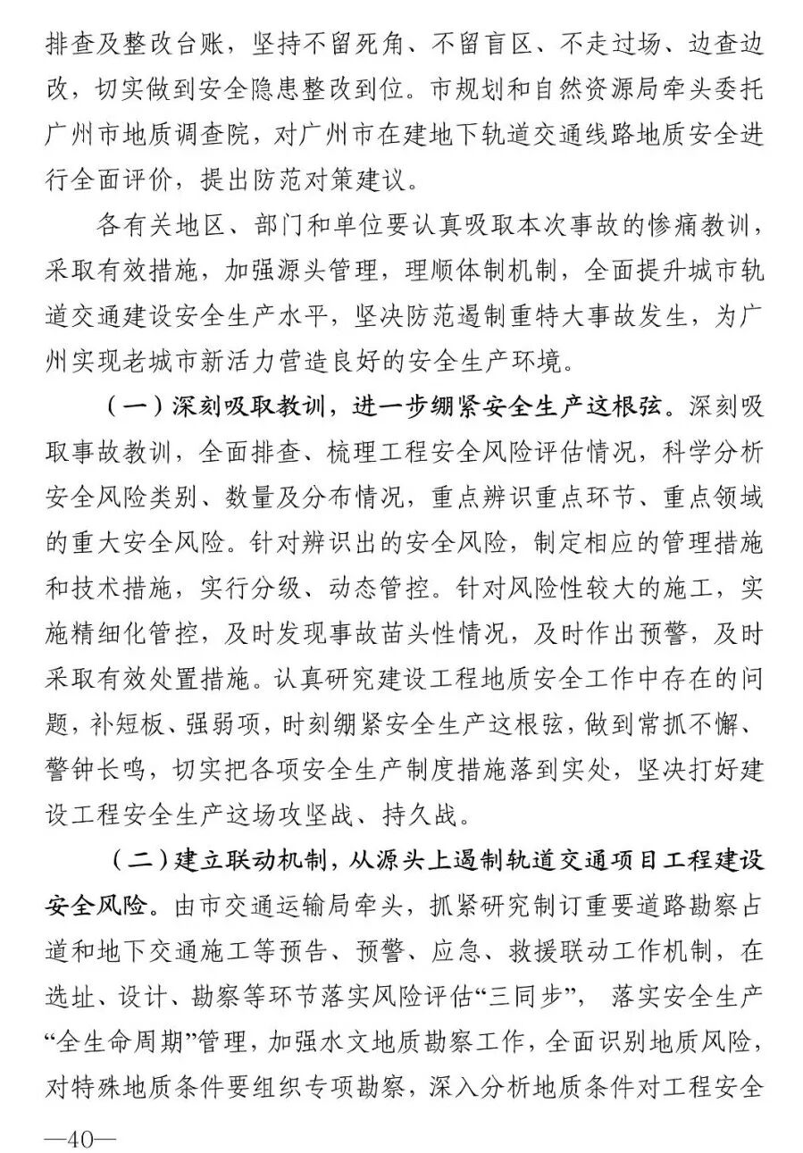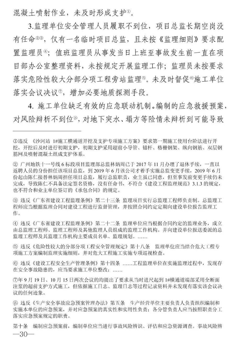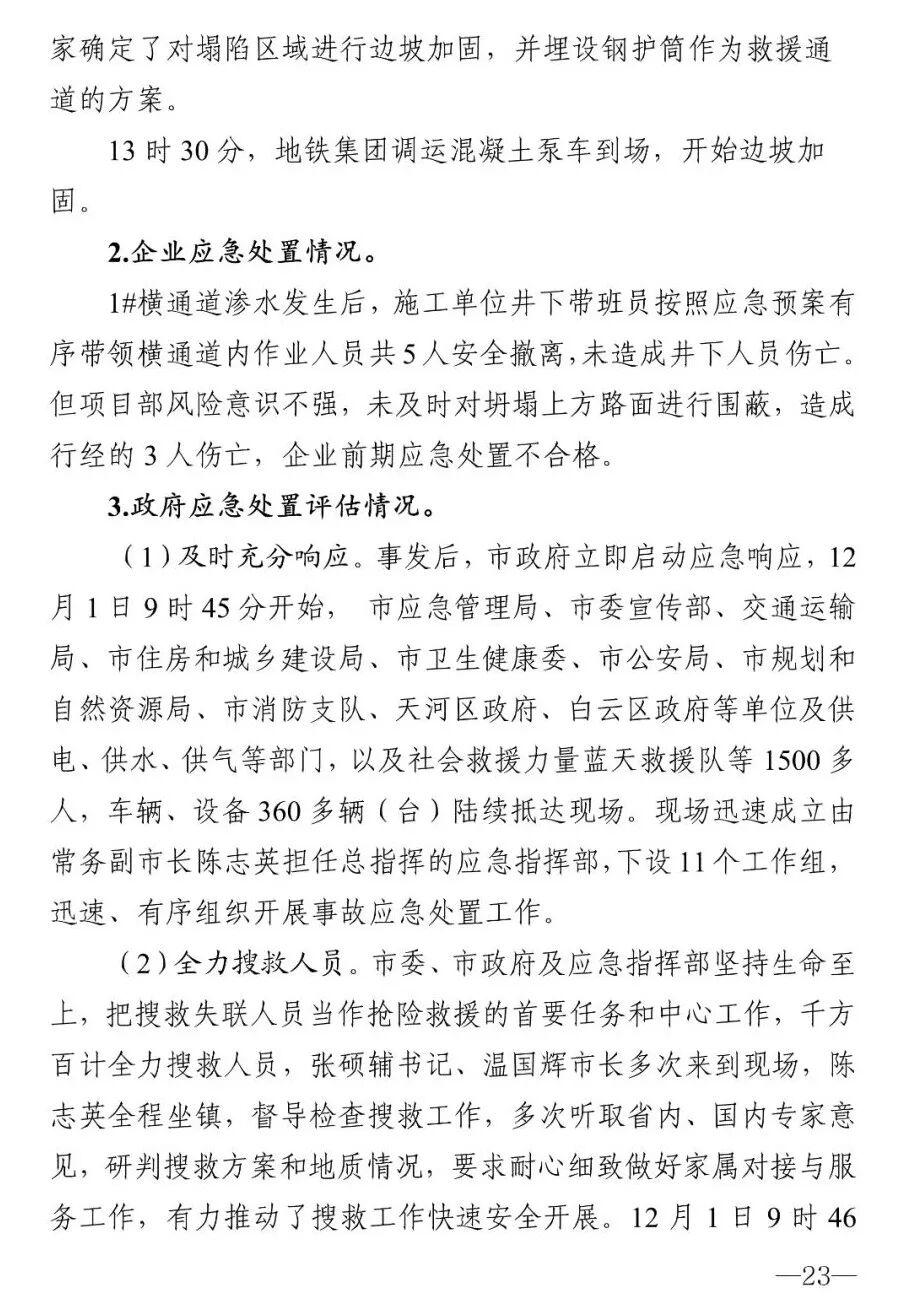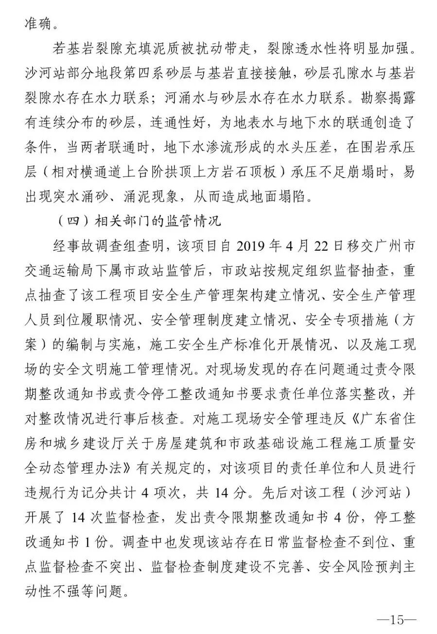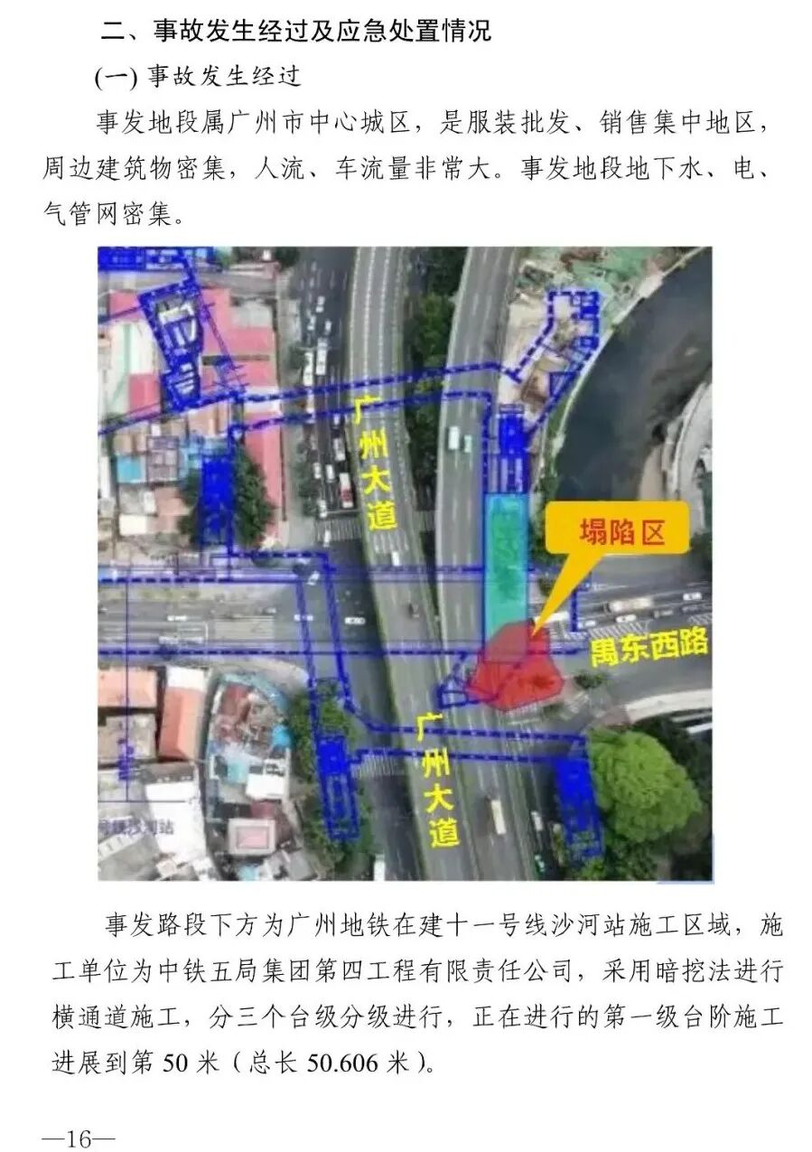 2020年5月18日,廣州市應(yīng)急管理局發(fā)布了事故調(diào)查報(bào)告。調(diào)查認(rèn)定,“12·1”坍塌事故是一起地下施工遭遇復(fù)雜地質(zhì)條件引發(fā)的較大責(zé)任事故。施工單位,在井下塌陷的情況下未能考慮地上的風(fēng)險并采取封堵措施,是造成地面人員遇難的直接原因,對事故發(fā)生負(fù)有重要責(zé)任。