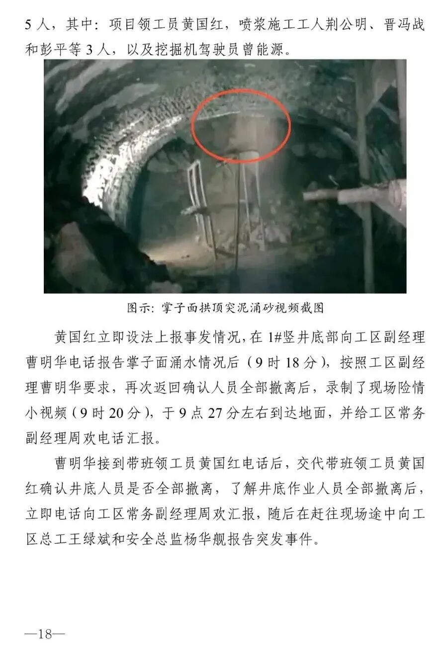 事發(fā)時橫通道內(nèi)共有5人,隨后項(xiàng)目領(lǐng)班員黃某立即設(shè)法上報(bào)事發(fā)情況,在9時18分向工區(qū)副經(jīng)理電話報(bào)告了掌子面涌水情況,隨后人員開始全部撤離。