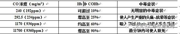 CO是一種最常見的有毒氣體,民用領(lǐng)域CO的產(chǎn)生有兩種,一是煤氣瓶中煤氣發(fā)生泄漏,而煤氣中主要成分是CO和氫氣,因此煤氣泄漏會(huì)導(dǎo)致CO升高,二是燃料的不完全燃燒,如果物質(zhì)在燃燒過程中,氧氣不足則會(huì)產(chǎn)生大量的CO氣體。CO的危害是通過與人體血液中血紅蛋白的結(jié)合,而且結(jié)合率大于O2與血紅蛋白的結(jié)合率,從而導(dǎo)致血氧濃度降低而引起中毒,表1列出了CO的急性毒性資料。在我們大氣對(duì)流層中的CO的本底濃度約為0.1~2ppm。店鋪內(nèi)蒸汽發(fā)生器通過燃燒液化石油氣制備蒸汽的過程中,如果店鋪內(nèi)空氣不流通,有可能會(huì)造成液化石油氣的不完全燃燒,從而導(dǎo)致CO的產(chǎn)生。