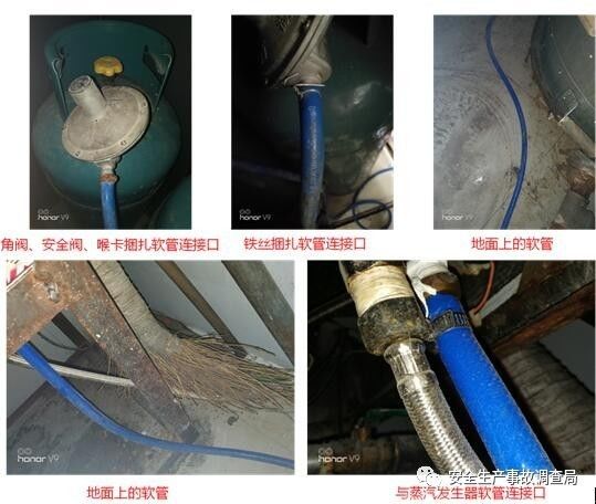 事故現(xiàn)場(chǎng)液化石油氣安全附件及軟管連接情況