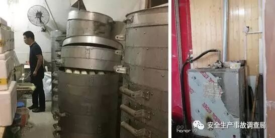 現(xiàn)場(chǎng)調(diào)查發(fā)現(xiàn),商鋪一層內(nèi)存有2桶煤氣鋼瓶,經(jīng)查證為液化石油氣,由杭州蕭山益龍液化氣儲(chǔ)配有限公司提供,每桶50kg;一臺(tái)燃?xì)庹羝l(fā)生器,無(wú)銘牌;四籠饅頭已經(jīng)蒸制完成,其中有一籠還放在汽鍋上,汽鍋在商鋪內(nèi)。商鋪二層有一個(gè)空煤氣罐,已經(jīng)不用;堆放面粉原料若干;休息室一間,休息間空調(diào)處于運(yùn)行狀態(tài),窗戶關(guān)閉。
