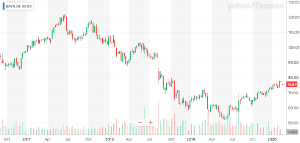 拜耳公司表示,自從2018年6月德國拜耳以630億美元,約合人民幣4330億元的代價收購孟山都以來,拜耳的股價已經(jīng)下跌近45%。