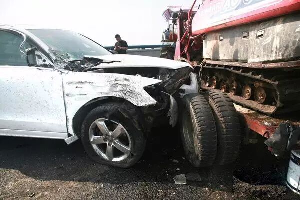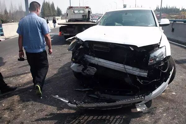 10月9日上午9時30分左右,江蘇揚(yáng)州,新建成的萬福大橋上發(fā)生一起交通事故。一名開奧迪轎車的中年女子,邊開車邊用手機(jī)拍照,就在走神的一剎那,撞上前面的收割機(jī)。由于奧迪車急速變道,行駛在其后的一輛轎車避讓不及,再次與其發(fā)生碰撞,事故致收割機(jī)上1人受傷。