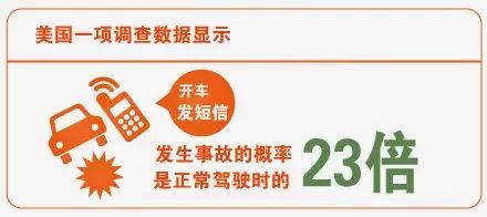 而美國的調(diào)查數(shù)據(jù)顯示,開車時發(fā)短信,發(fā)生事故的概率是正常駕駛時的23倍!