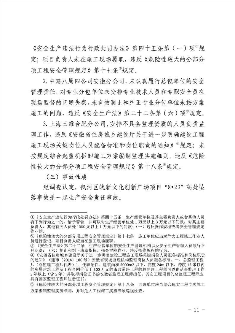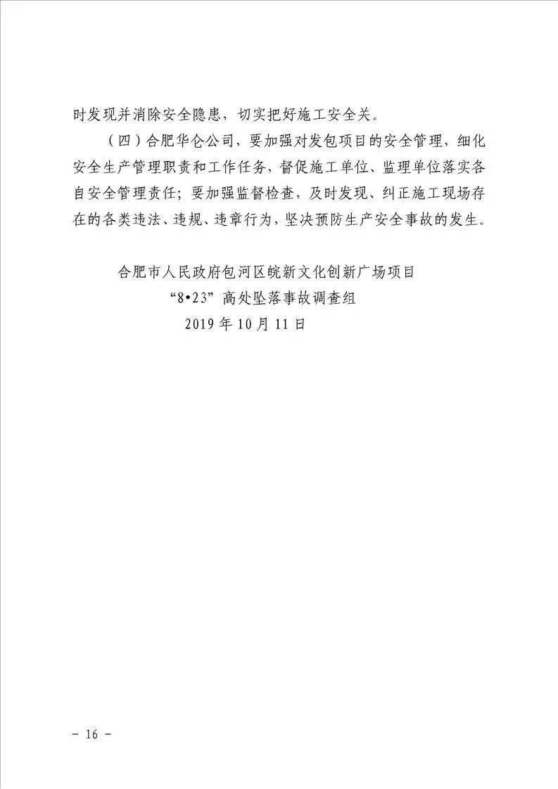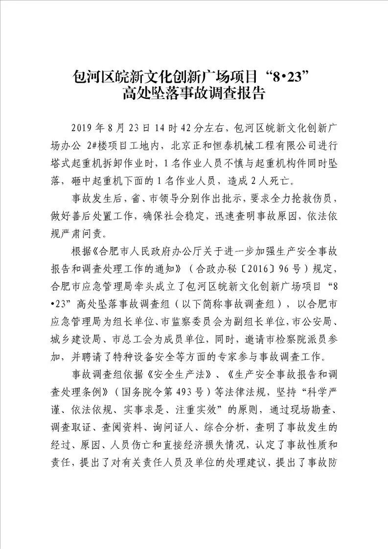 安徽合肥包河區(qū)皖新文化創(chuàng)新廣場項目“8·23”高處墜落事故調查報告