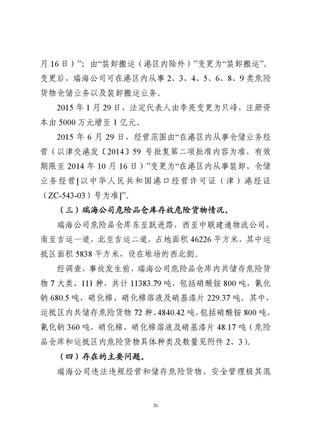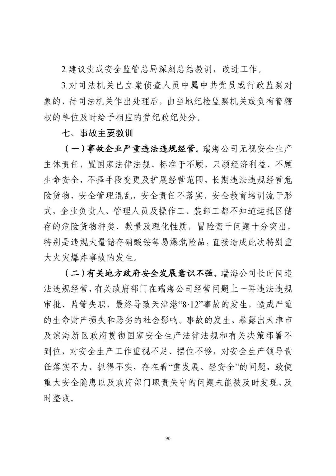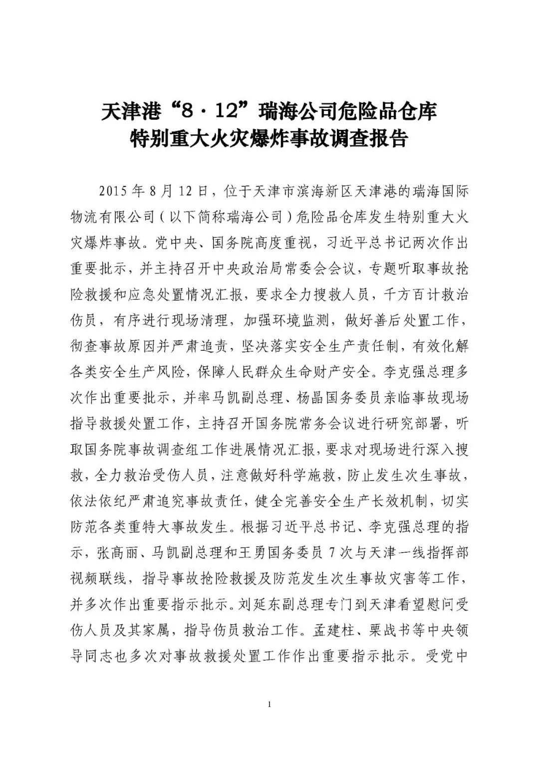 天津港“8·12”瑞海公司危險(xiǎn)品倉(cāng)庫(kù) 特別重大火災(zāi)爆炸事故調(diào)查報(bào)告