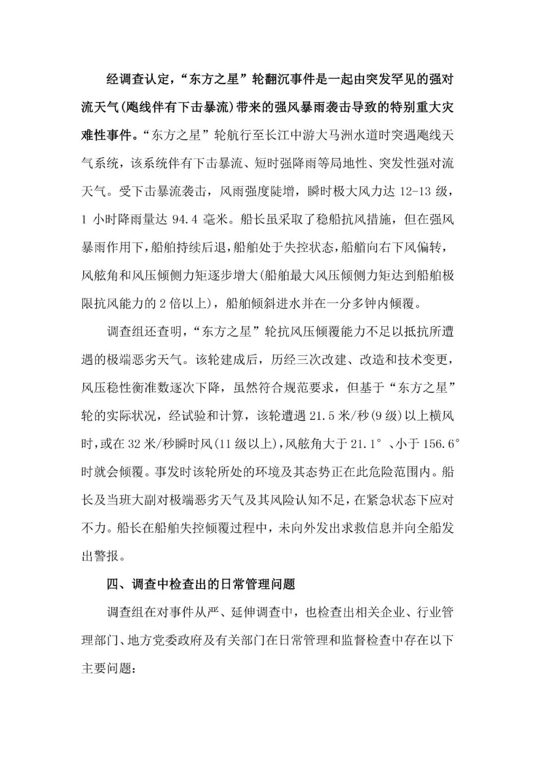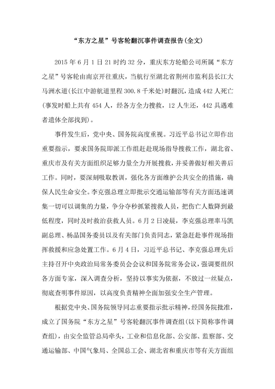 “東方之星”號(hào)客輪翻沉事件調(diào)查報(bào)告(全文) 如下:
