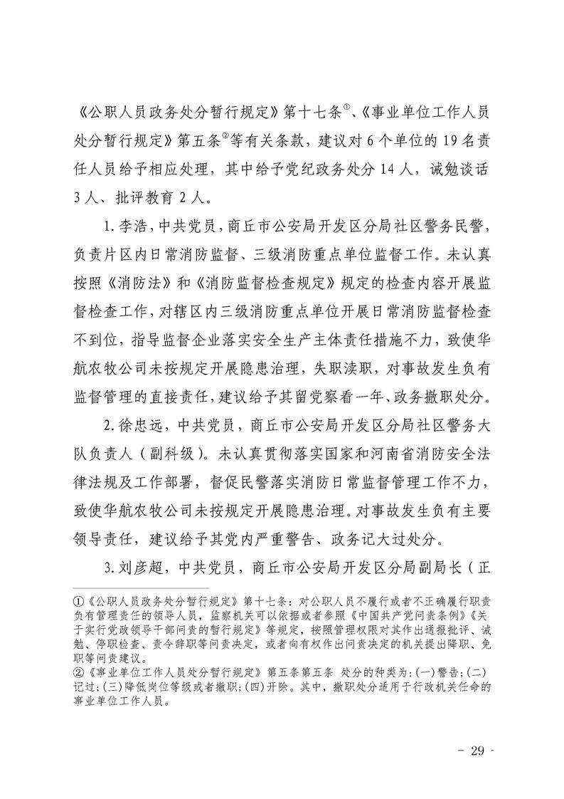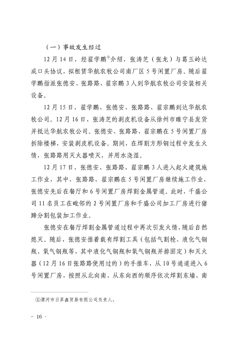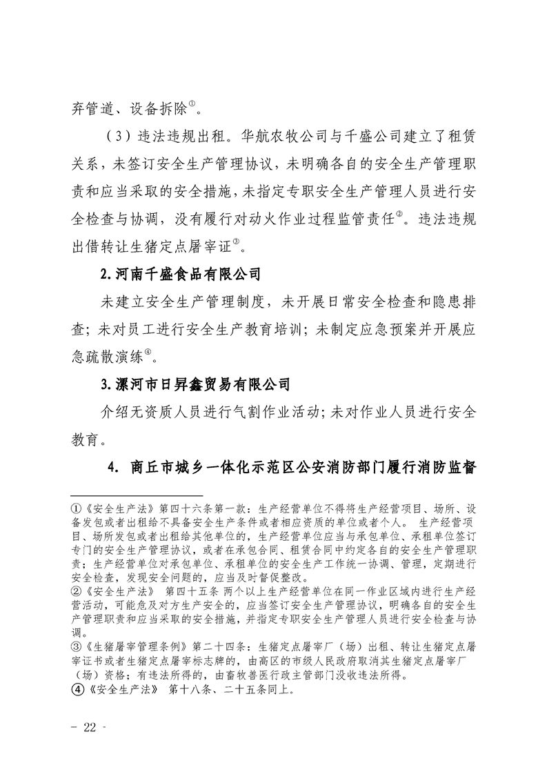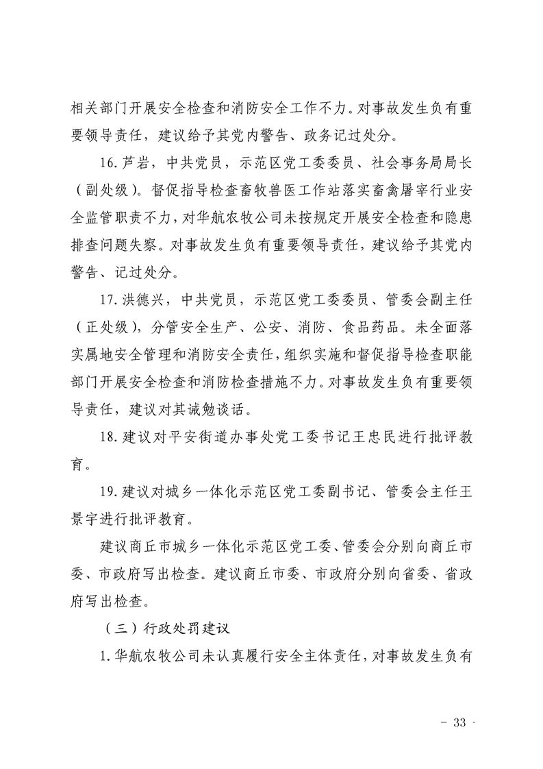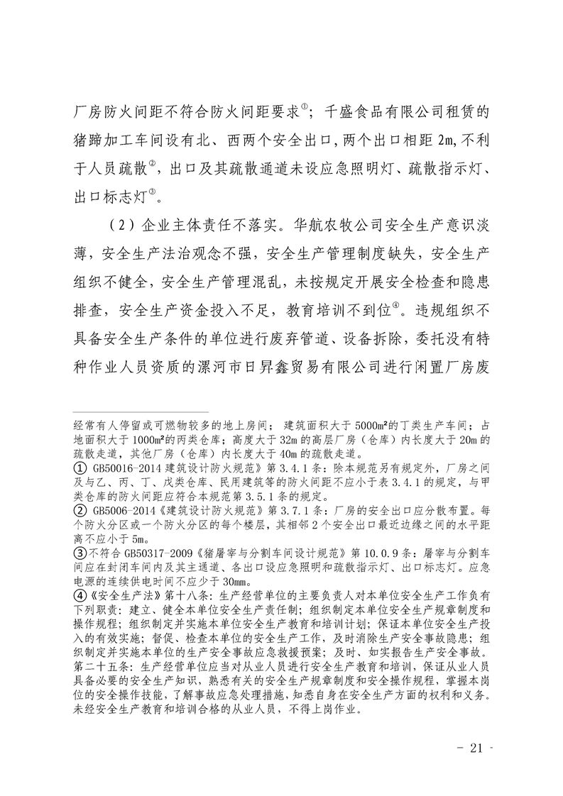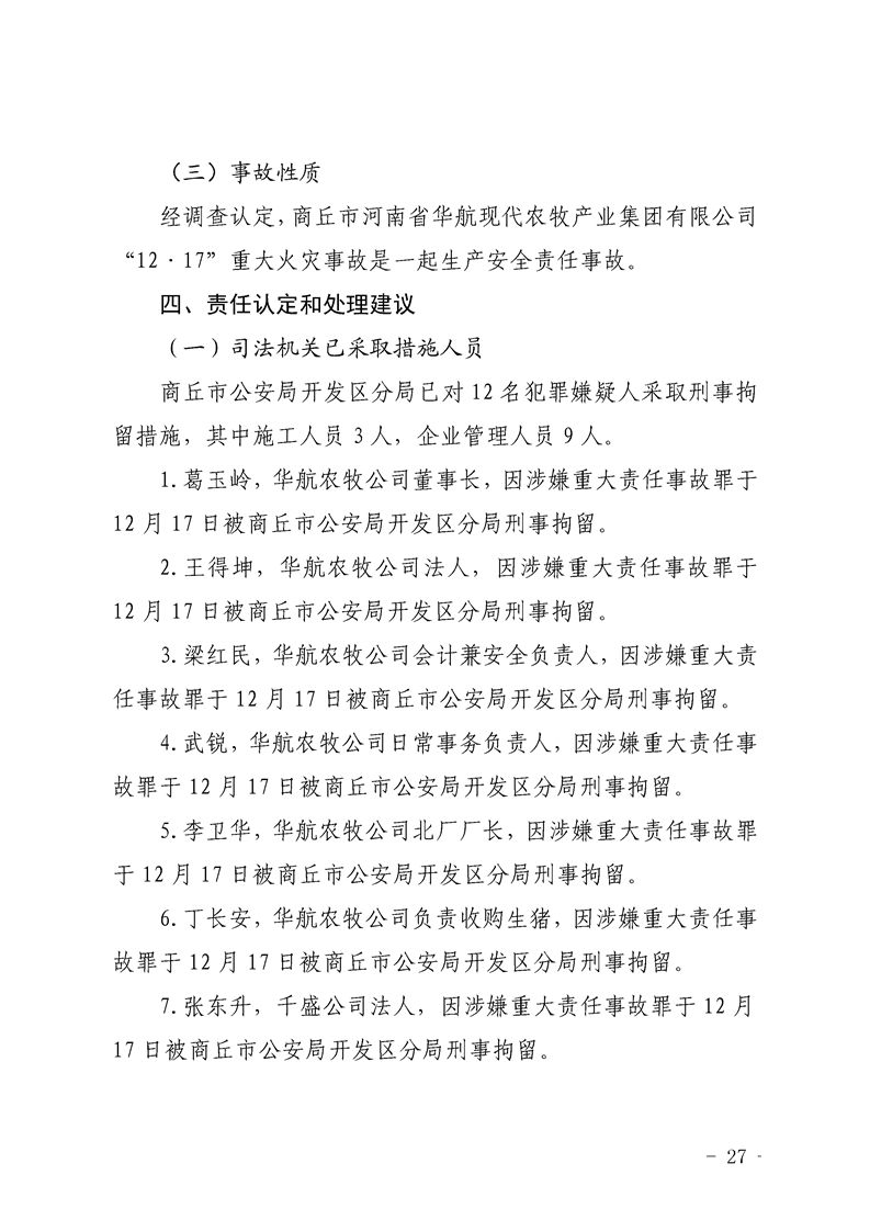 2019年4月28日,河南省應(yīng)急管理廳官網(wǎng)公布《商丘市河南省華航現(xiàn)代農(nóng)牧產(chǎn)業(yè)集團(tuán)有限公司“12·17”重大火災(zāi)事故調(diào)查報(bào)告》。報(bào)告全文如下: