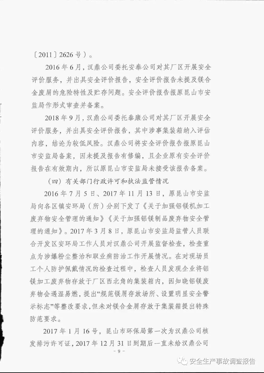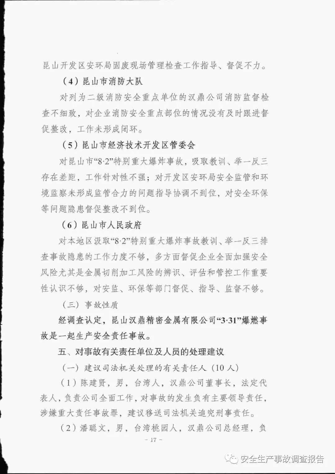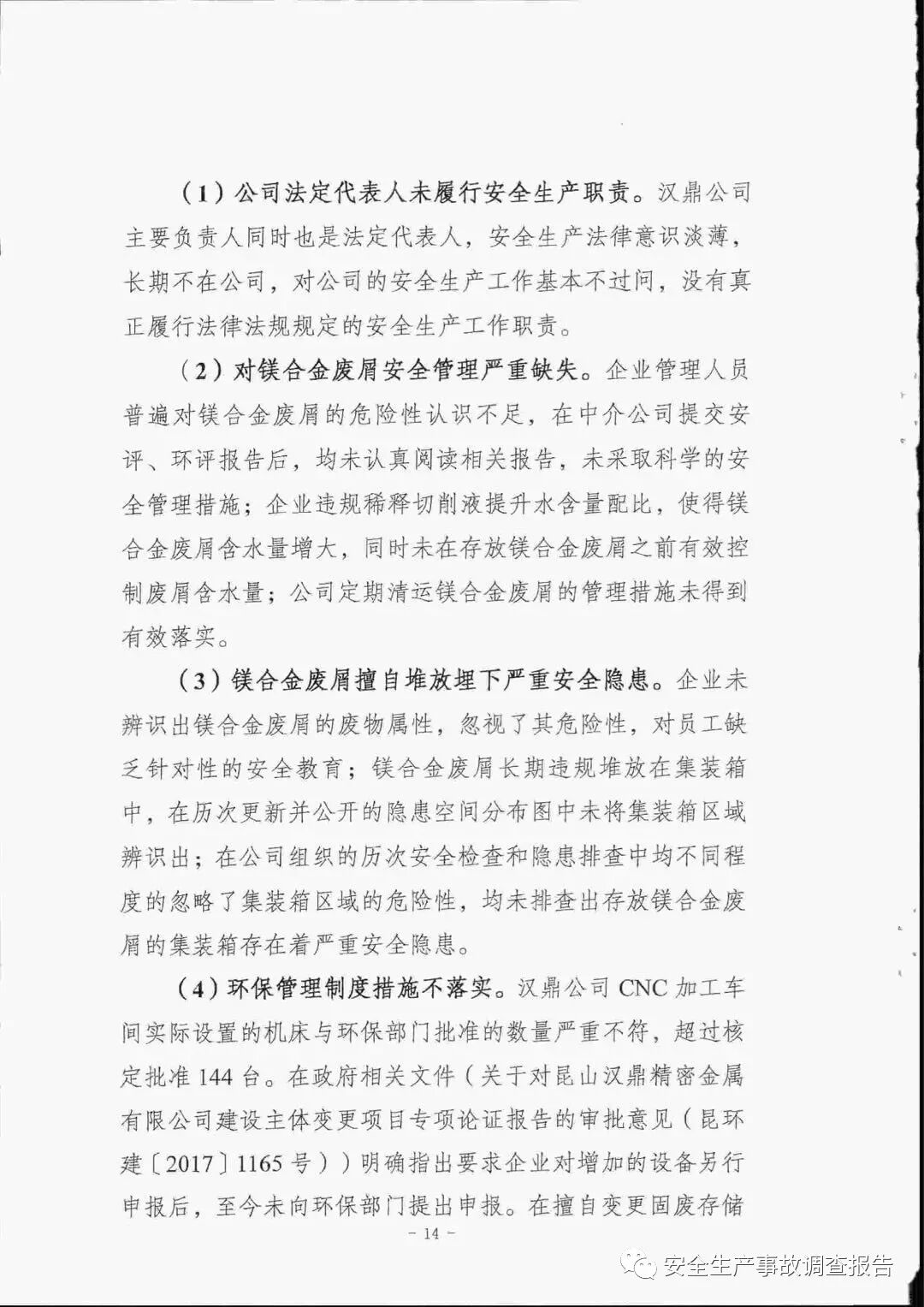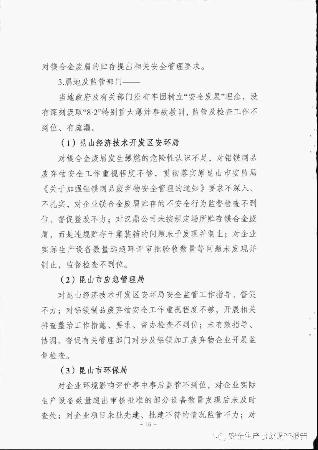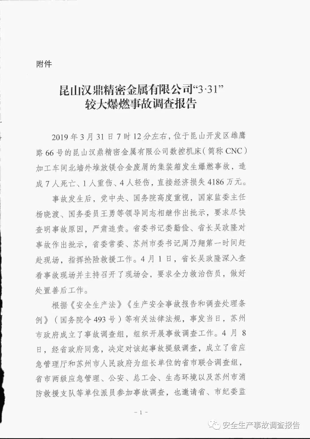 2019年7月15日,江蘇省安全生產(chǎn)委員會辦公室發(fā)布蘇安辦函【2019】17號《省安委辦關(guān)于落實(shí)省政府對昆山漢鼎精密金屬有限公司“3.31”較大爆燃事故批復(fù)要求的通知》。調(diào)查報告全文如下: