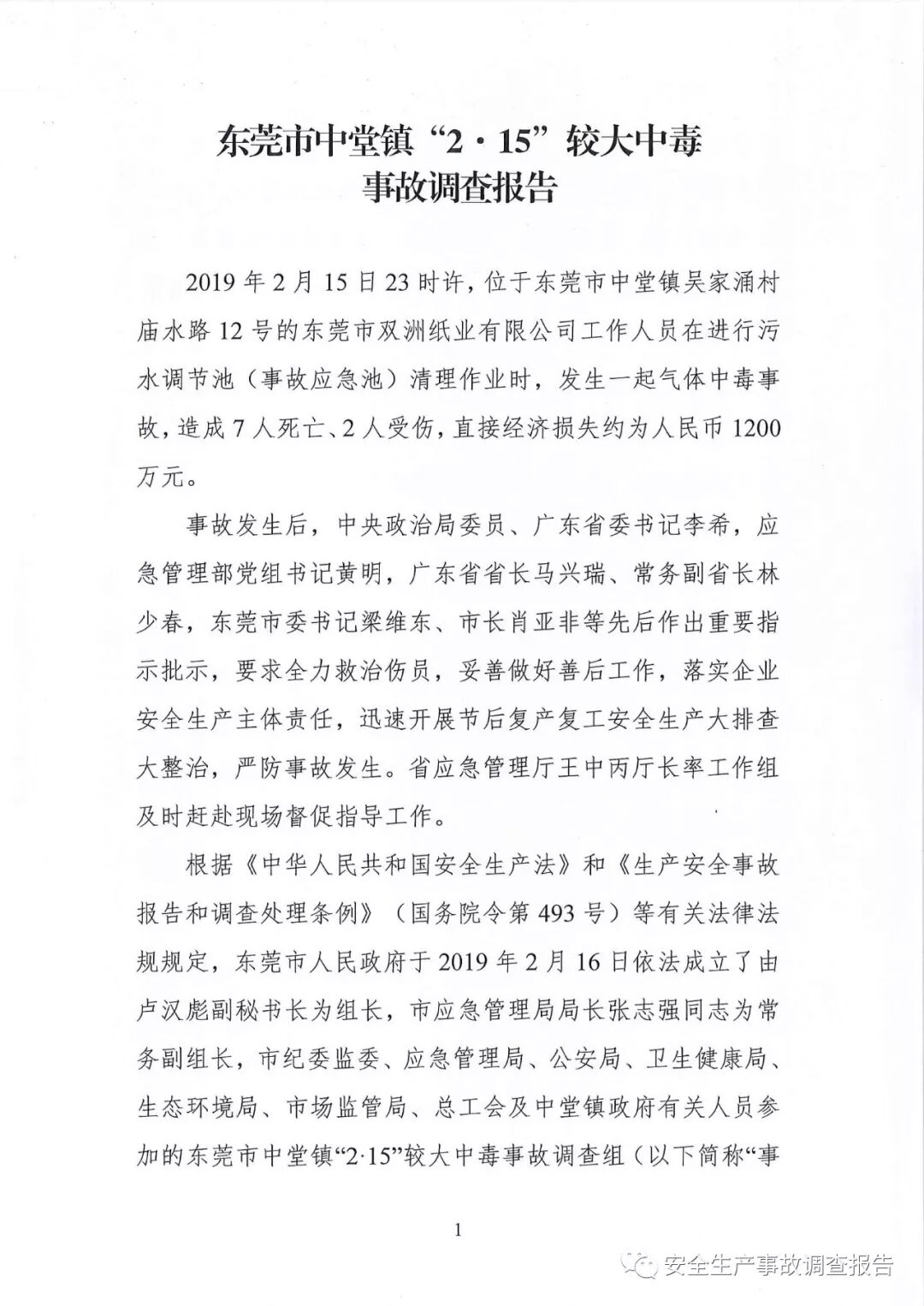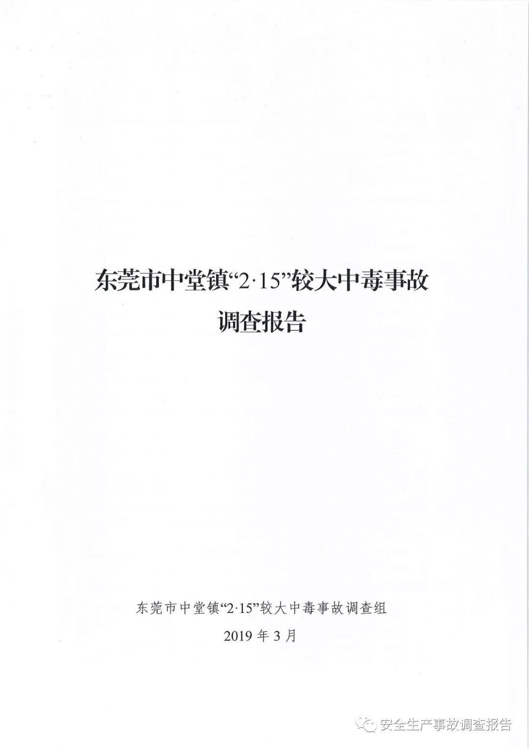 2019年3月27日,東莞市應(yīng)急管理局在官網(wǎng)發(fā)布《中堂鎮(zhèn)“2.15”較大中毒事故調(diào)查報(bào)告》。報(bào)告全文如下: