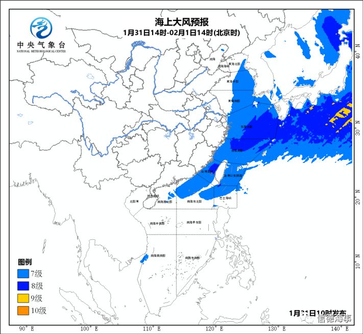 中央氣象臺(tái)1月31日10時(shí)繼續(xù)發(fā)布海上大風(fēng)預(yù)報(bào):預(yù)計(jì),受冷空氣和溫帶氣旋的共同影響,1月31日午后至2月1日中午,東海大部海域、臺(tái)灣海峽將有8級(jí)、陣風(fēng)9級(jí)的大風(fēng);黃海東部海域、臺(tái)灣以東洋面、南海北部海域、巴士海峽將有7級(jí)、陣風(fēng)8級(jí)的偏北或東北風(fēng)。