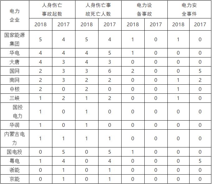 2018年電力事故分析報告:國家能源集團(tuán)、大唐集團(tuán)等企業(yè)人身傷亡事故較2017年同比上升!