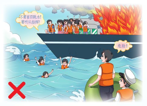 如需撤離船只,應聽從船上工作人員指揮,有組織有秋序地登上救生艇或救生筏,不要盲目跳水求生。