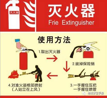 滅火器使用步驟:一提二拔三對(duì)準(zhǔn)四噴。