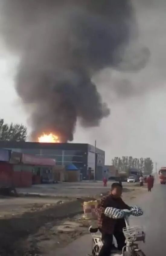 北青報(bào)記者從網(wǎng)友發(fā)出的視頻中看到,一處庫(kù)房爆炸,有明顯火光,同時(shí)冒出黑色濃煙。目擊者胡先生告訴北青報(bào)記者,4月16日下午5點(diǎn)10分左右,在滄縣姚官屯鄉(xiāng)高官屯一庫(kù)房發(fā)生爆炸,“地點(diǎn)在104國(guó)道路邊,附近是村莊。當(dāng)時(shí)(裝有)壓縮氣體的罐很多都炸了,聲音很大,炸了十多下??匆?jiàn)有人從里面跑出來(lái)。”胡先生說(shuō)。