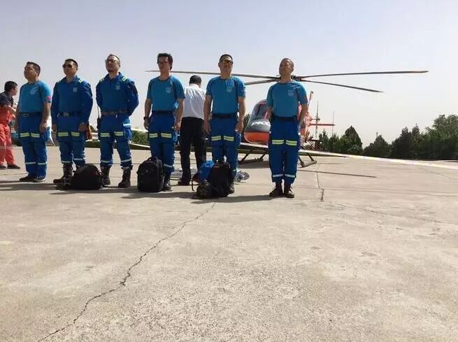 圖為藍(lán)天救援隊(duì)救援現(xiàn)場作業(yè)