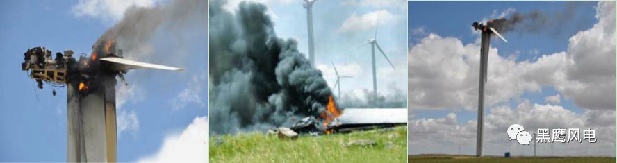 事故 4 ——東汽風機4.13風機燃毀事故。2011年4月13日,中廣核甘肅干河口第一風電場7#發(fā)生風機著火燒毀事故。發(fā)生事故的風機型號為FD77A,發(fā)生事故的風機編號為 FD77ANo365。事故發(fā)生后,中廣核風電公司、東方汽輪機廠、中廣核甘肅干河口第一場對事故進行了深入調(diào)查。結(jié)果表明,此次事故是由變槳故障引起風機加速,在緊急剎車時產(chǎn)生火花引起火災(zāi)。
