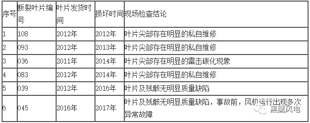 中復連眾其后發(fā)文澄清,此報告沒有全面、客觀的反映事實,在事件處理的過程中,責任認定并沒有得到任何第三方機構(gòu)的正式確認,僅依據(jù)單方面的推測即對事故原因做出了定性判斷,未經(jīng)過我司的確認許可即對外公布,對我公司的企業(yè)形象造成了嚴重的影響,是對于葉片制造企業(yè)名譽的損害。下表為中復連眾整理的昌圖天橋山項目折損葉片信息: