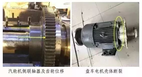 22:40分,公司領(lǐng)導(dǎo)到達現(xiàn)場,組織人員對現(xiàn)場采取保護和應(yīng)急處置?;謴?fù)供電后,對1#機組進行了初步檢查,發(fā)現(xiàn)排氣缸開裂,安全閥沖開,勵磁機端蓋脫落,手動盤車無法盤動等。在安排專人現(xiàn)場監(jiān)控后向區(qū)域?qū)I(yè)組領(lǐng)導(dǎo)、股份公司相關(guān)部室人員進行了匯報。