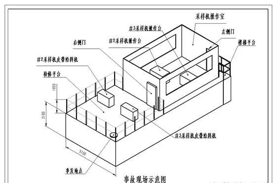 當(dāng)姚某某剛完成 B 煤車(chē)的接樣工作,突然聽(tīng)到接樣室外有人大喊“有人被壓在采樣機(jī)下面了”,于是立即跑上采樣機(jī)操作室外平臺(tái)查看,發(fā)現(xiàn)羅某某被擠壓在#3 采樣機(jī)與露天平臺(tái)護(hù)欄之 間(采樣頭底部與欄桿間頂部距離約10公分左右)。事故照片和示意圖見(jiàn)附件。