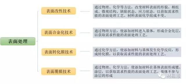 總共可以分為4大類:表面改性技術(shù)、表面合金化技術(shù)、表面轉(zhuǎn)化膜技術(shù)和表面覆膜技術(shù)。