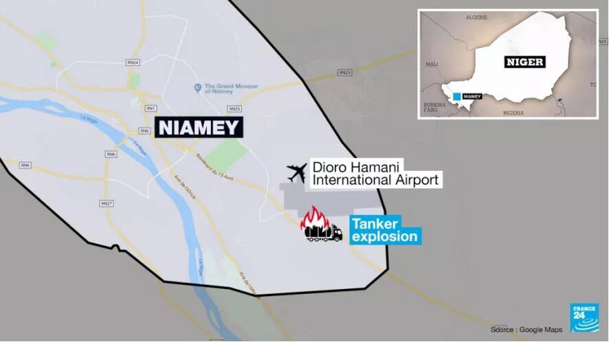 事故發(fā)生在尼日爾首都尼亞美市迪奧里哈馬尼國際機場東南方RN1號公路的一座加油站附近。爆炸造成55人當(dāng)場死亡,37人受傷。爆炸現(xiàn)場附近的房屋被大火燒毀,遇難者多為婦女和十幾歲的青少年。
