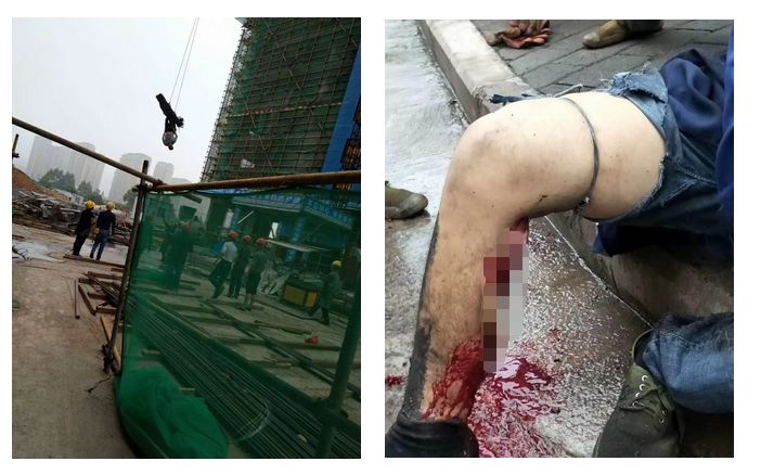 工人腿部被鋼筋夾住隨鋼筋一起被吊起