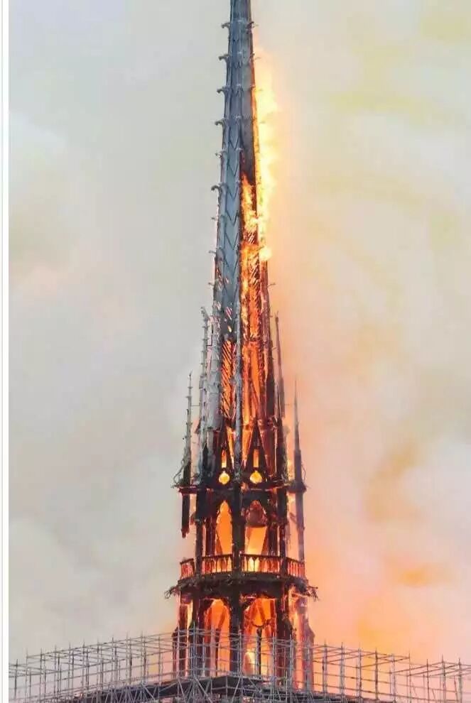 標志性的尖塔在火災(zāi)中倒塌,現(xiàn)場人員一片驚呼。