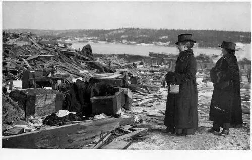 1917年12月6日,一艘裝載有大量軍事炸藥的運(yùn)輸船在加拿大哈利法克斯鎮(zhèn)爆炸,2000人死亡,近萬(wàn)人受傷。直到第一枚核彈爆炸之前,這是有史以來死傷最慘重的人為爆炸事故,其爆炸力相當(dāng)于2.9千噸TNT。