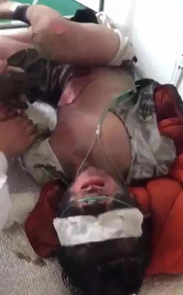消防隊員趕到現(xiàn)場后,發(fā)現(xiàn)女子已經(jīng)沒了呼吸,孩子被其緊緊摟在懷中,發(fā)出痛苦的呻吟,而女子身體只有胸腹部抱住孩子頭的地方是好的。